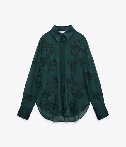 ZARA SEMI-SHEER EMBROIDERED BLOUSE