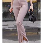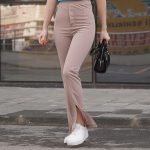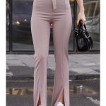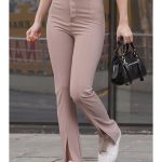 High-waist trousers with a matching lined belt. Featuring front pockets, false welt back pockets and metal hook, inside button and zip fly fastening.