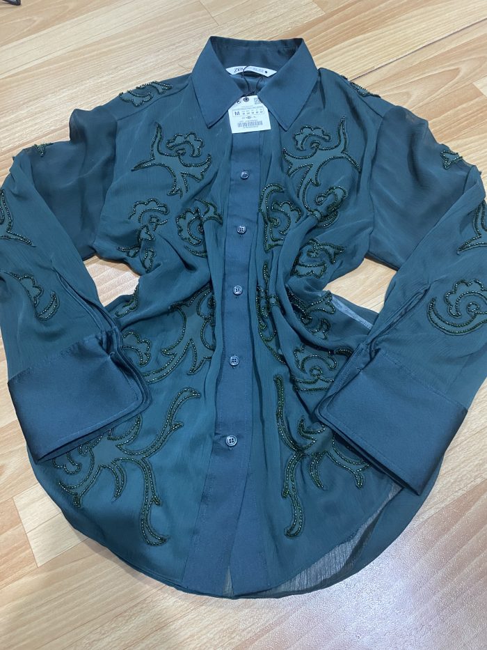ZARA SEMI-SHEER EMBROIDERED BLOUSE